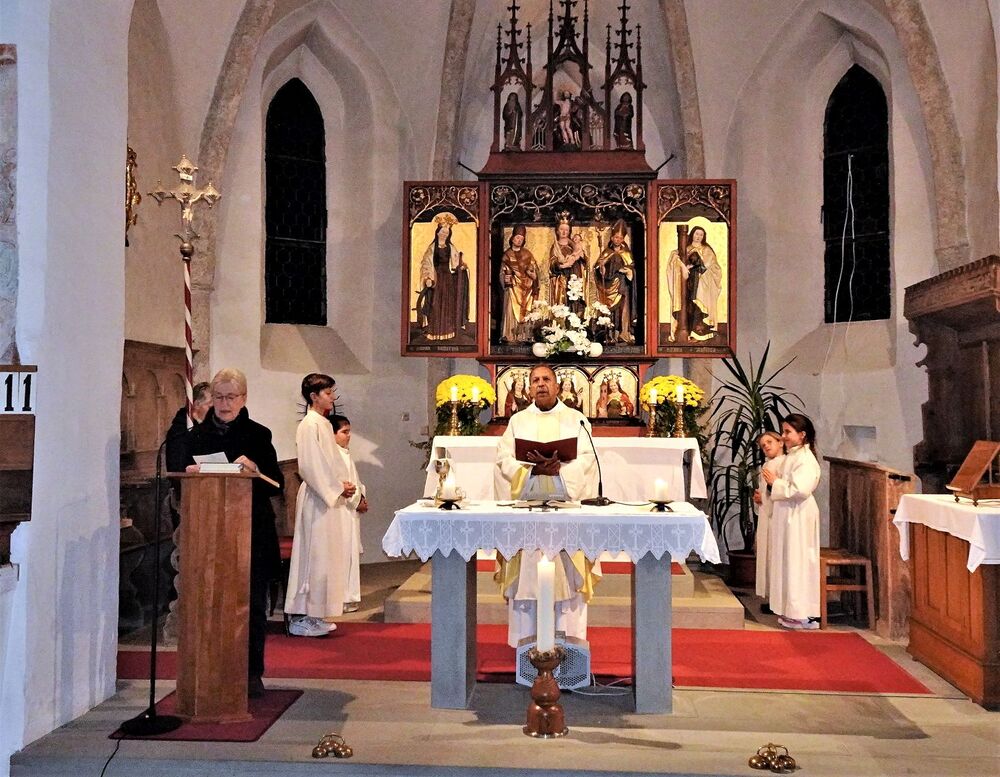 Pfarrer Joy Peter Thattakath zelebrierte den Patroziniumsgottesdienst im wunderschönen Beschlinger Kirchlein und hob in seiner Predigt mit Blick auf den Hl. Martin besonders die Barmherzigkeit und Nächstenliebe als wesentliches Merkmal christlichen Lebens hervor. Musikalisch unterstützt wurde die Hl. Messe vom Musikverein Beschling.